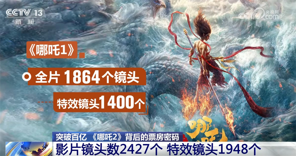 據(jù)電影主創(chuàng)團隊提供的數(shù)據(jù):《哪吒1》,也就是《哪吒之魔童降世》全片1864個鏡頭,特效鏡頭1400個;而《哪吒2》,鏡頭數(shù)達到2427個,其中特效鏡頭1948個。影片中的每一個特效鏡頭、每一幀畫面都是138家動畫公司、4000多名動畫人的合力托舉。