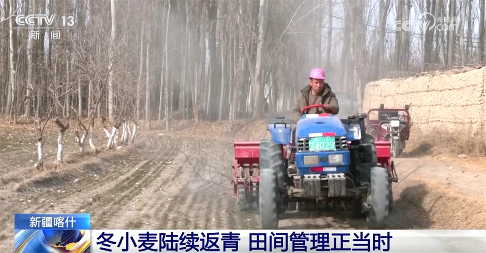 在新疆喀什阿依庫勒村,記者看到一袋袋肥料已碼放在地頭,拖拉機(jī)正在田間為冬小麥追施返青肥。為確??κ驳貐^(qū)冬小麥春季管理工作順利進(jìn)行,當(dāng)?shù)剞r(nóng)業(yè)部門結(jié)合當(dāng)前冬小麥的長勢和天氣情況,科學(xué)指導(dǎo),組織做好冬小麥病蟲草害防治、保墑防凍、追肥等工作。