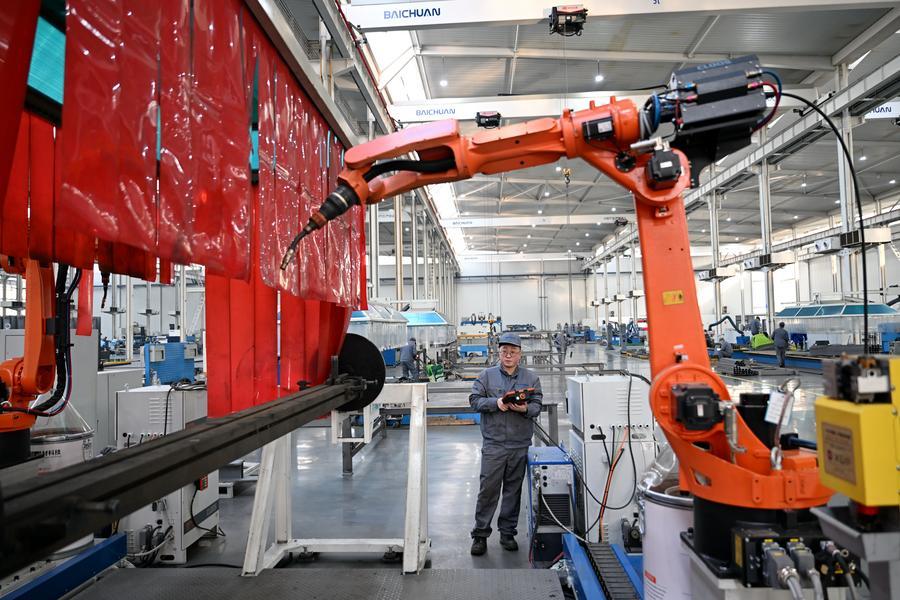 2月18日,工人在唐山國家高新技術(shù)產(chǎn)業(yè)開發(fā)區(qū)中信重工開誠智能裝備有限公司車間內(nèi)調(diào)試機(jī)器人產(chǎn)品。新華社記者 牟宇 攝