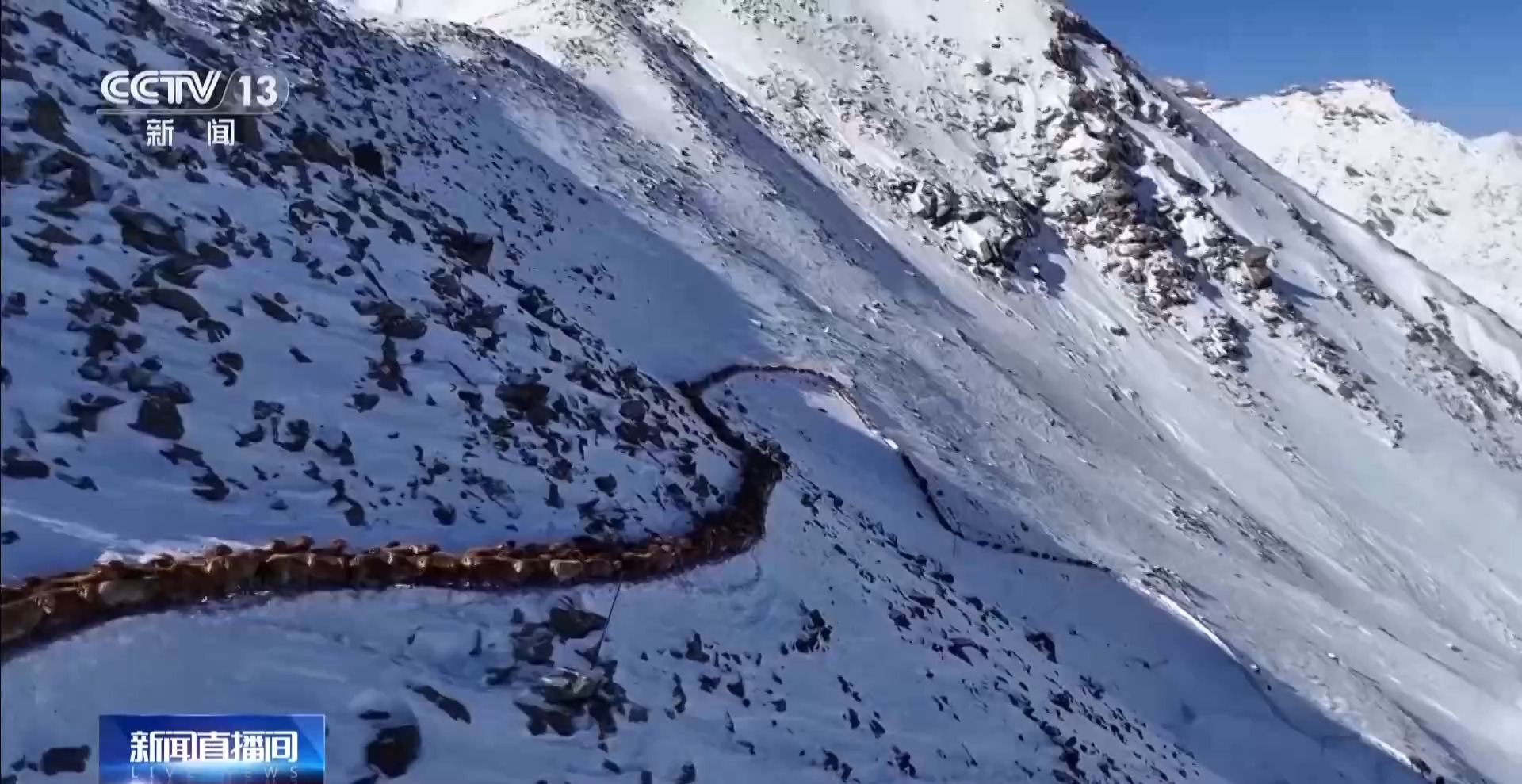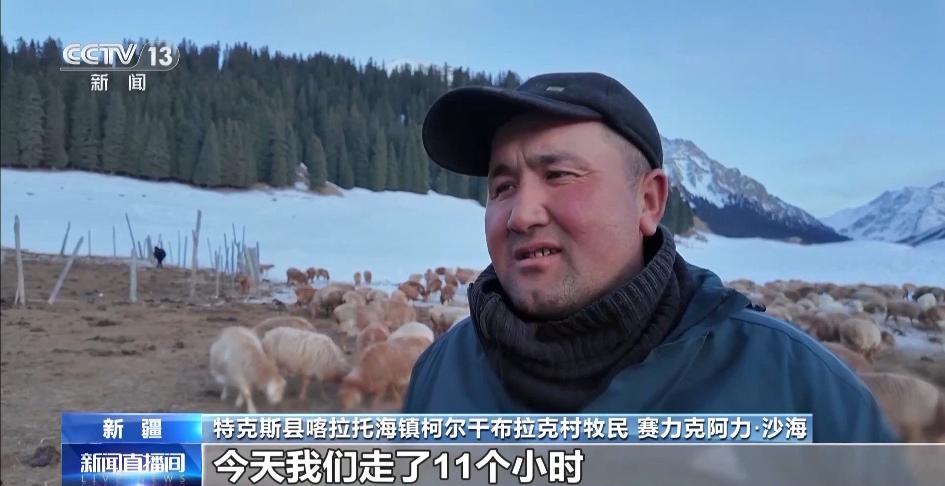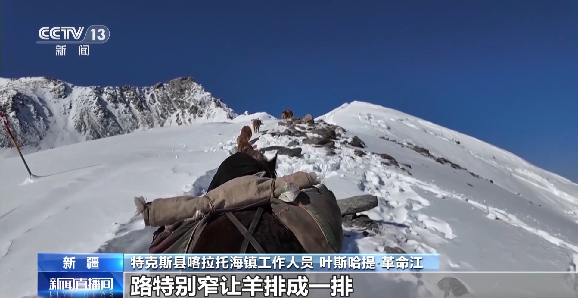 特克斯縣喀拉托海鎮(zhèn) 葉斯哈提·革命江:我們牧民到了達坂以后,這個路特別窄,讓羊排成一排,慢慢地上山。