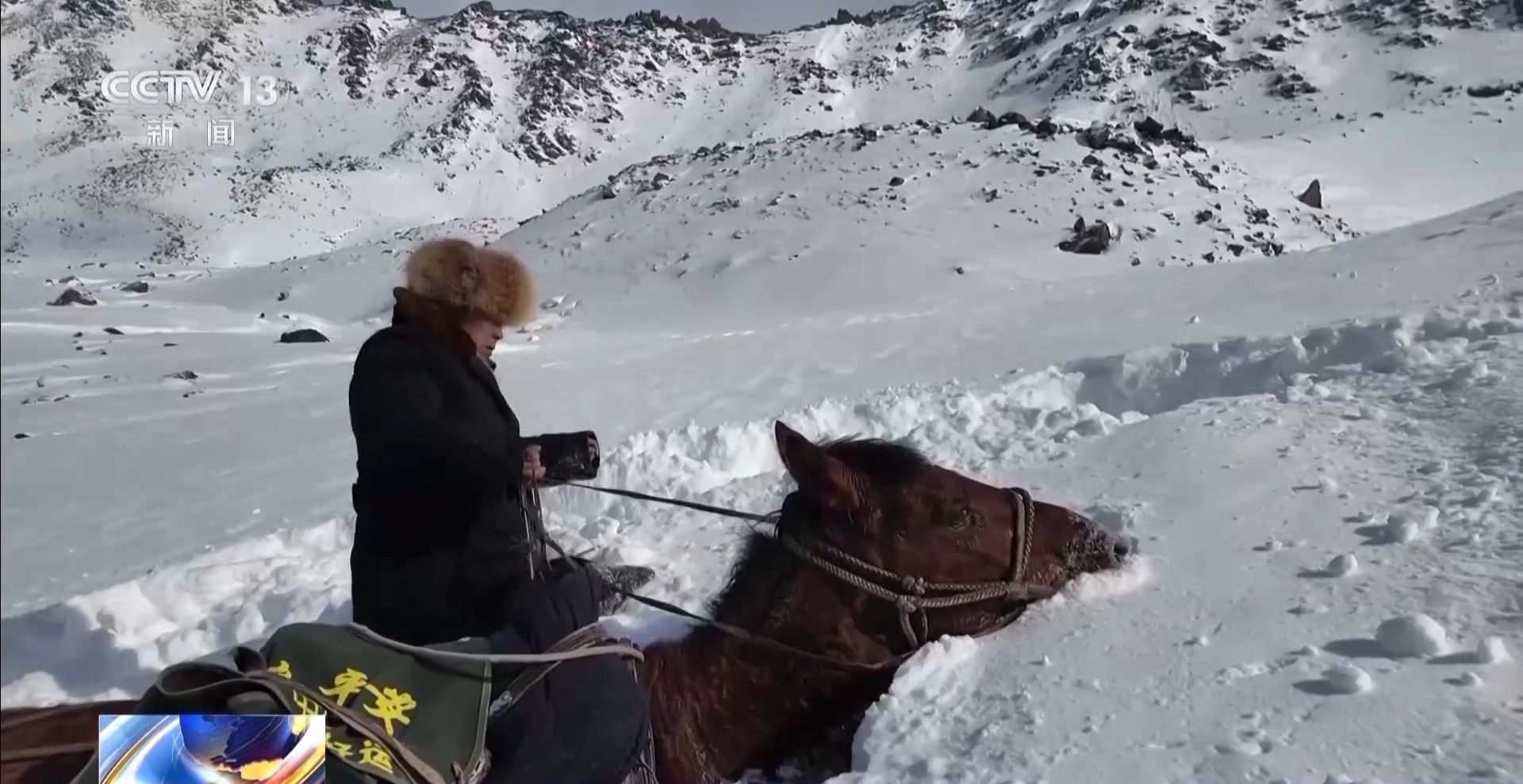 山上有很厚的積雪。即使有之前轉(zhuǎn)場的畜群踩出的路,也會很快被風吹雪覆蓋。剛上達坂,干部阿曼吐爾騎的馬一不留神就摔在雪窩里,好在積雪厚,人和馬都沒有大礙。