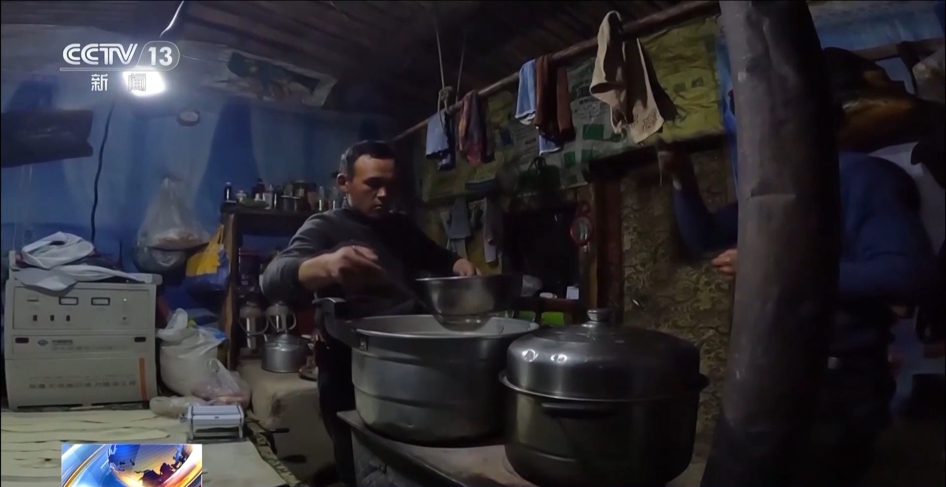 眼下的春季轉(zhuǎn)場對牧民來說,是四季轉(zhuǎn)場中最難的一次。牛羊經(jīng)過一冬的嚴寒,缺乏新鮮飼草的飼喂身體變得瘦弱。加上大多是懷孕待產(chǎn)的母羊,轉(zhuǎn)場的路也異常嚴峻。天黑前,賽力克阿力一行到達了他們經(jīng)過的第一個轉(zhuǎn)場服務(wù)站:克孜勒塔斯轉(zhuǎn)場服務(wù)站,在這兒,大家終于吃上了熱騰騰的湯面,牛羊也能在這里補飼休息。