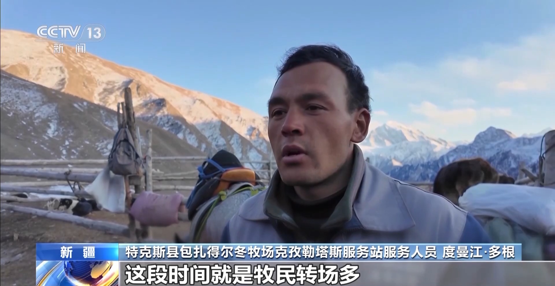 特克斯縣包扎得爾冬牧場克孜勒塔斯服務(wù)站服務(wù)人員 度曼江·多根:這段時間牧民轉(zhuǎn)場多,我們這里每天最少來三四個人,今天來了五家人,很熱鬧。