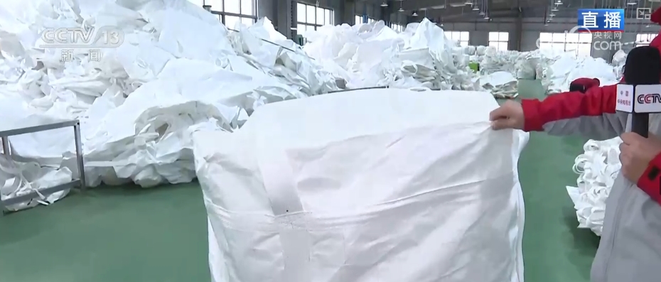 這個叫集裝袋,俗稱“噸袋”,是化工企業(yè)和冶金企業(yè)等行業(yè)大量使用的耗材。這是一個能裝三噸重東西的、高質(zhì)量、可出口的集裝袋。
