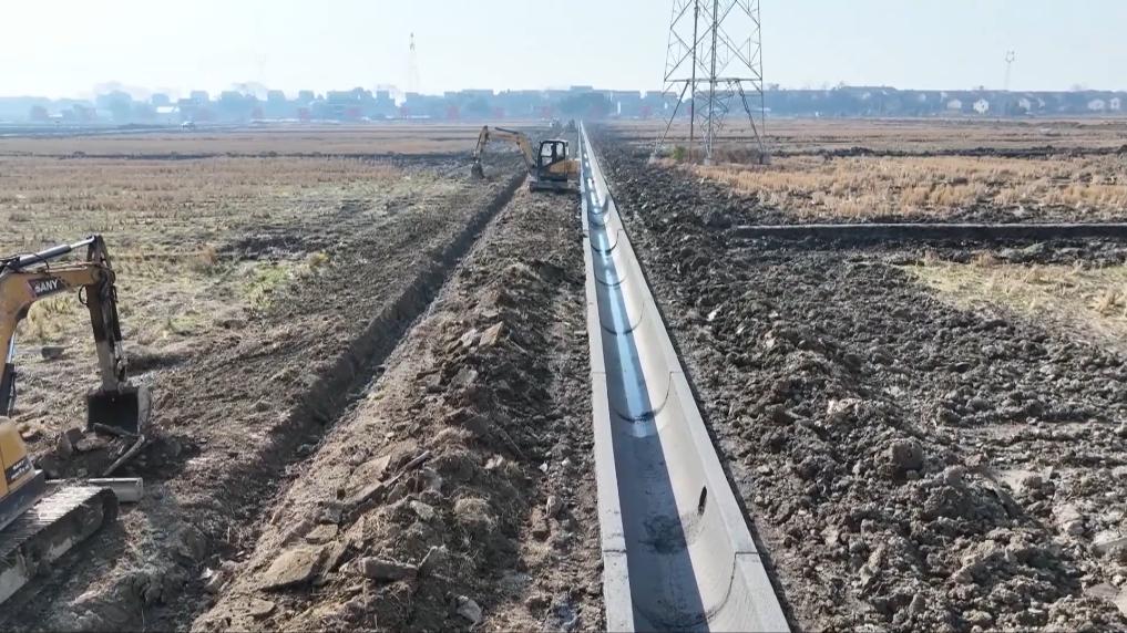 在資陽(yáng)區(qū)沙頭鎮(zhèn)富興村高標(biāo)準(zhǔn)農(nóng)田建設(shè)現(xiàn)場(chǎng),工人們正緊張有序地開(kāi)挖渠道、安裝渠槽。