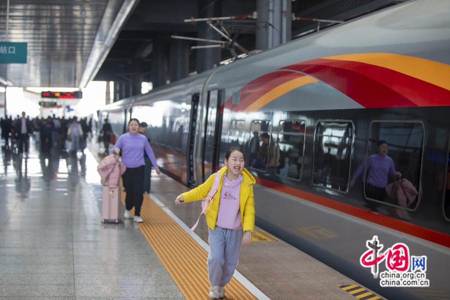 2025年春運(yùn)期間,旅客在贛州西站登乘智能復(fù)興號(hào)列車。中國(guó)網(wǎng)發(fā) 鄒陽/攝
