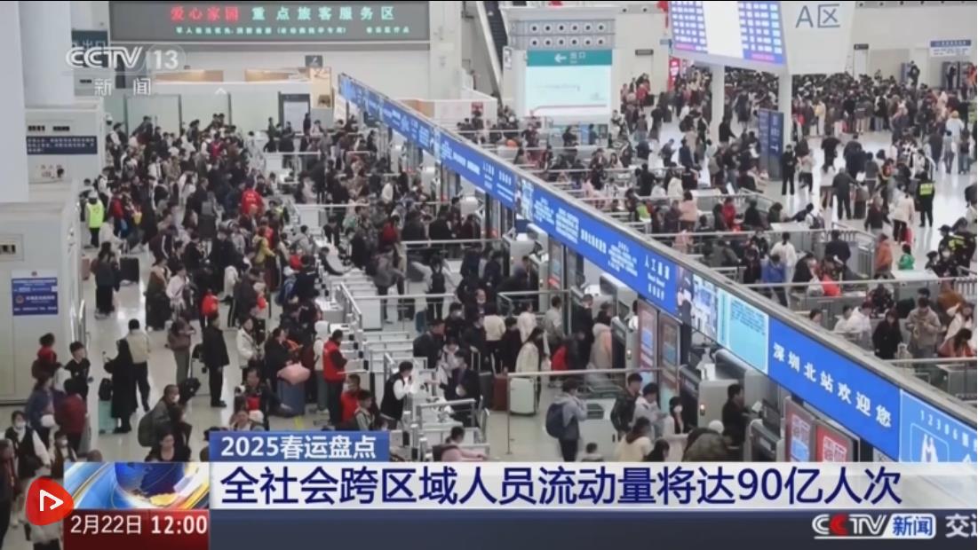 歷時40天的2025年春運2月22日將結(jié)束。今年春運從1月14日開始,多項數(shù)據(jù)創(chuàng)歷史新高。交通運輸部預(yù)計,整個春運期間,全社會跨區(qū)域人員流動量將達90億人次。