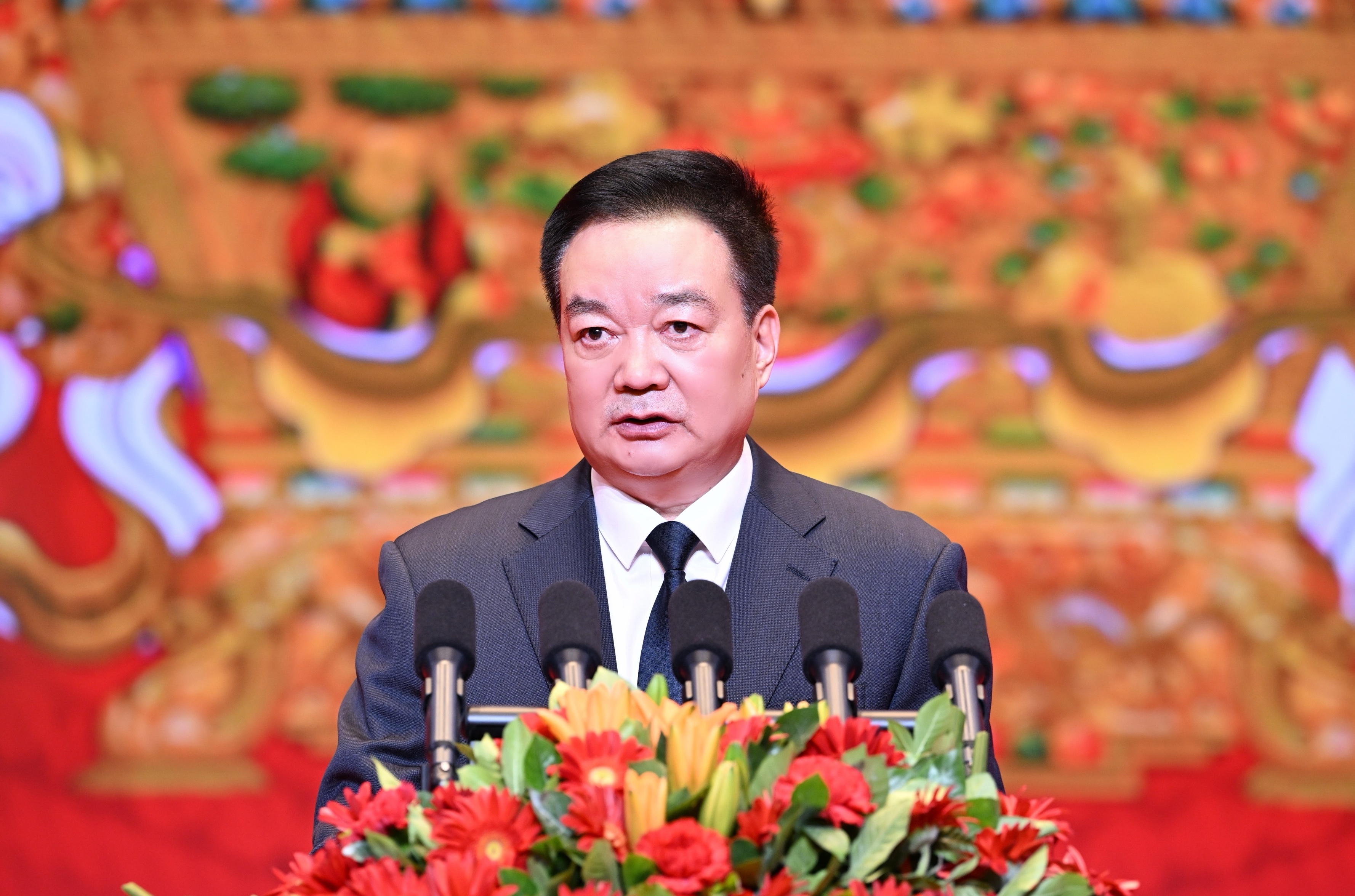 近日,西藏自治區(qū)各族各界喜迎2025年藏歷木蛇新年茶話會在拉薩舉行。這是茶話會現(xiàn)場。記者 旦增西旦 攝