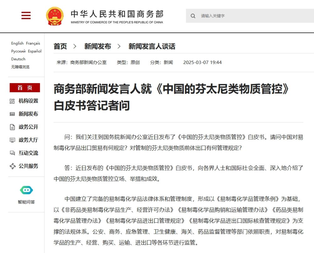 答:近日發(fā)布的《中國的芬太尼類物質(zhì)管控》白皮書,向各界人士和國際社會全面、深入地介紹了中國的芬太尼類物質(zhì)管控立場、舉措和成效。