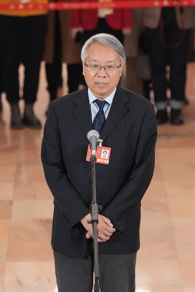 3月10日,全國政協(xié)十四屆三次會議第三場“委員通道”集體采訪活動在北京人民大會堂舉行。這是全國政協(xié)委員陳星燦接受媒體采訪。新華社記者 才揚(yáng) 攝