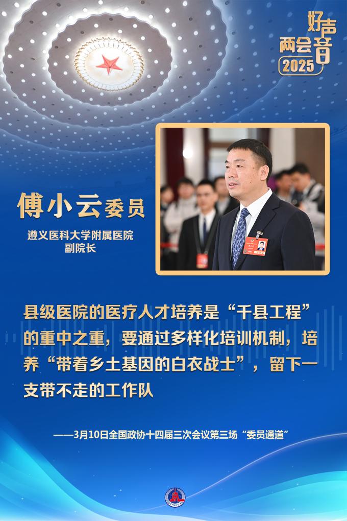 “國家持續(xù)實施‘千縣工程’,開展醫(yī)療人才‘組團(tuán)式’支援幫扶,支援西藏、新疆、青海等地區(qū)醫(yī)院和國家鄉(xiāng)村振興重點幫扶縣人民醫(yī)院。”遵義醫(yī)科大學(xué)附屬醫(yī)院副院長傅小云委員說。