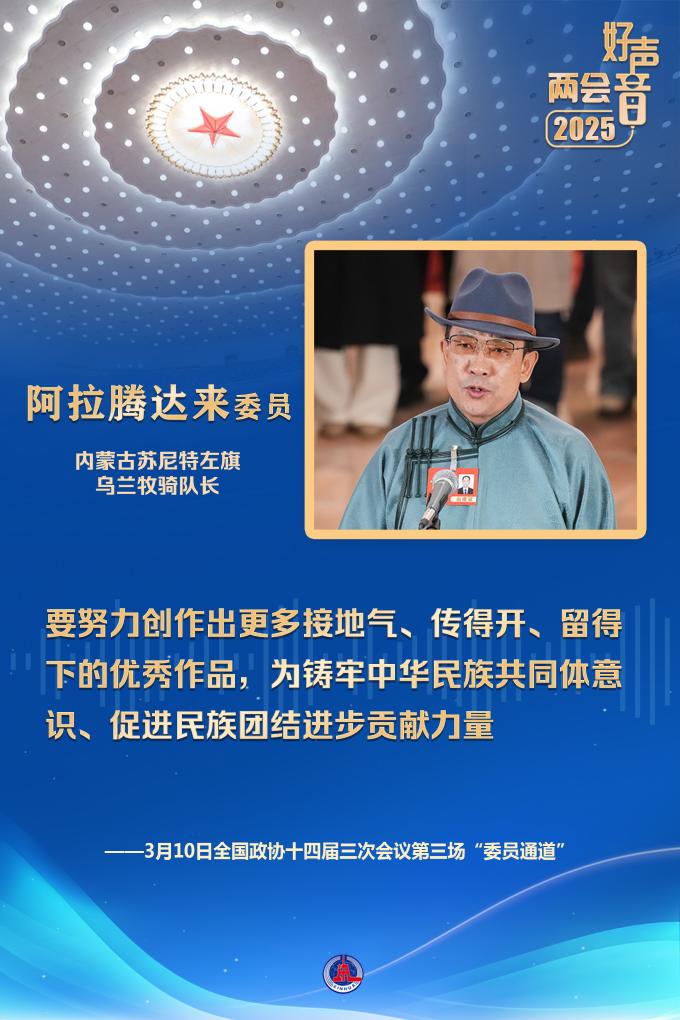 “在內(nèi)蒙古大地上,活躍著75支烏蘭牧騎隊伍,有3000多名隊員,每年開展演出1萬多場?!卑⒗v達(dá)來委員說,要努力創(chuàng)作出更多接地氣、傳得開、留得下的優(yōu)秀作品,為鑄牢中華民族共同體意識、促進(jìn)民族團(tuán)結(jié)進(jìn)步貢獻(xiàn)力量。