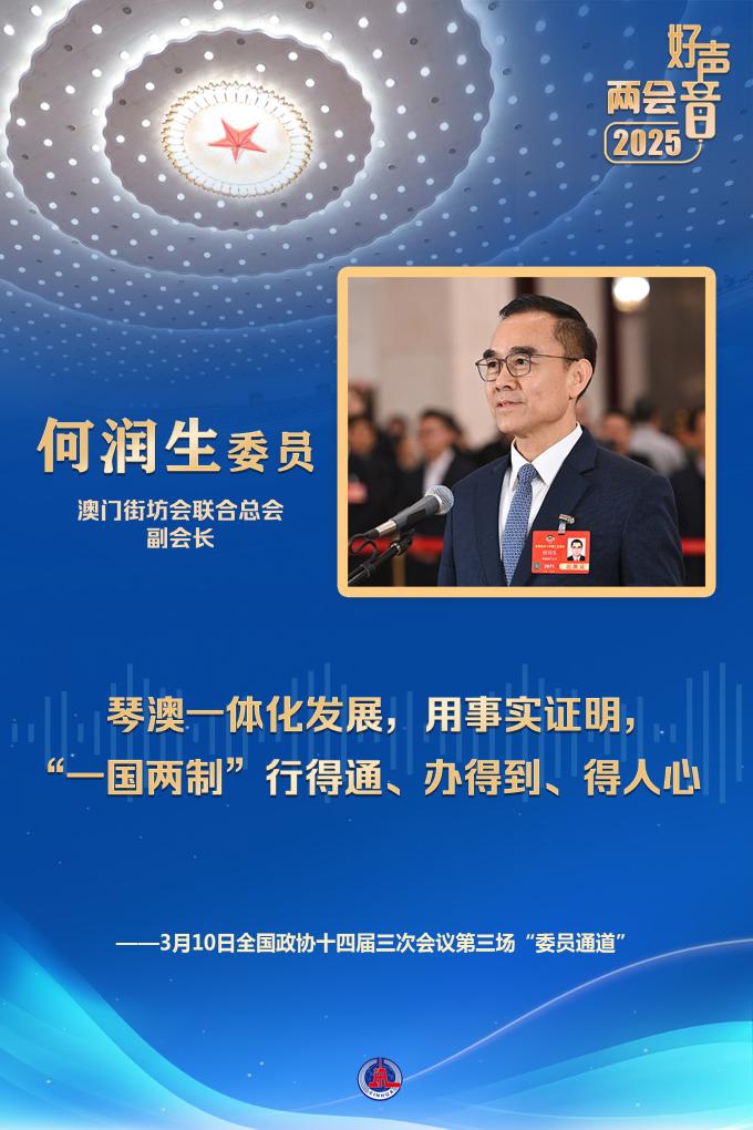2024年是澳門回歸祖國25周年。澳門街坊會聯(lián)合總會副會長何潤生委員向記者介紹了一名澳門居民搬到橫琴“澳門新街坊”生活的故事。在他看來,琴澳一體化發(fā)展,用事實證明,“一國兩制”行得通、辦得到、得人心。