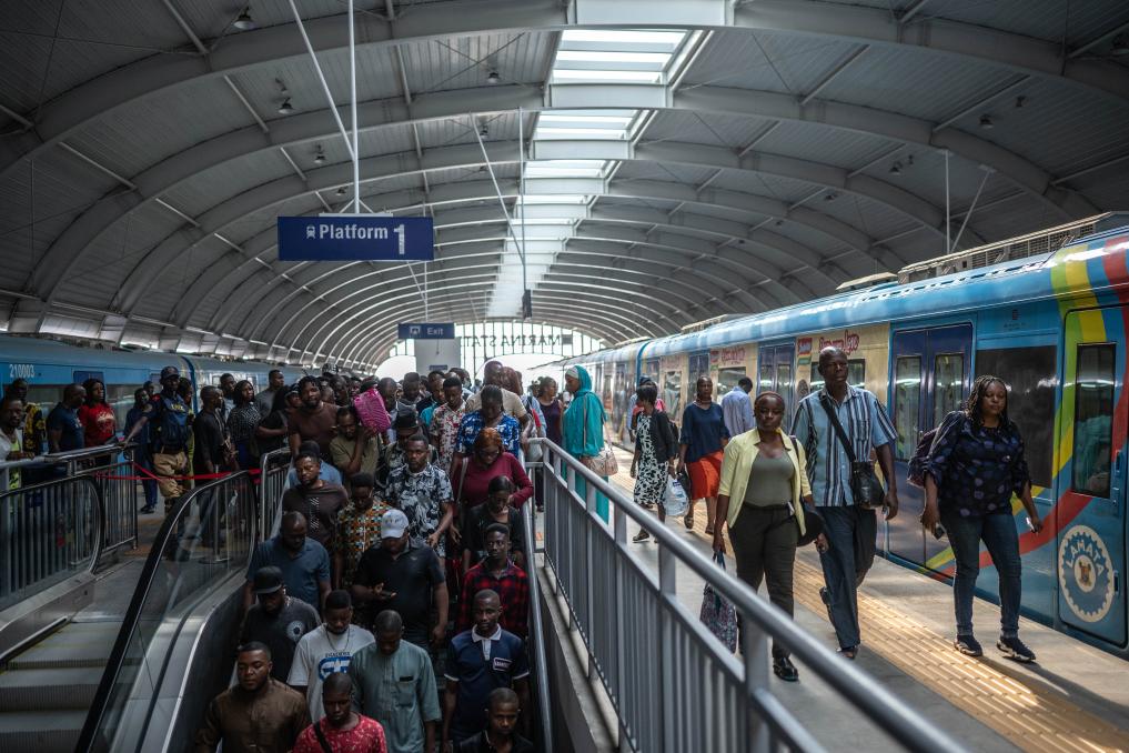 2024年12月2日,在尼日利亞拉各斯,乘客走在輕軌藍(lán)線的站臺(tái)上。拉各斯輕軌藍(lán)線是西非地區(qū)首條由中國(guó)企業(yè)自主設(shè)計(jì)、建造、施工、運(yùn)營(yíng)的電氣化城市軌道交通項(xiàng)目。新華社記者 王冠森 攝