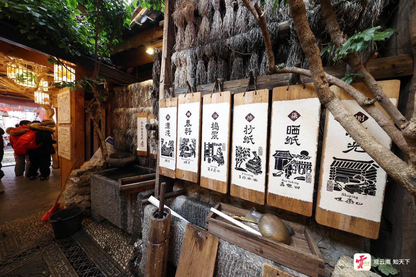 麗江古城內(nèi)以東巴文化體驗為亮點的“東巴紙坊”吸引著許多中外游客。在這里,游客們可以體驗到搗漿、抄紙、曬紙等東巴紙制作工藝,還能拿起東巴象形文字印章集章打卡。如果你好奇某個象形文字的含義,還能在這里買到一本東巴文“字典”,一一對照查看?!跋啾韧?,今年多了不少來自新加坡、馬來西亞的游客,東巴紙燈、明信片都是很受他們喜愛的產(chǎn)品。”東巴紙坊麗江銷售人員韓雨辰說。