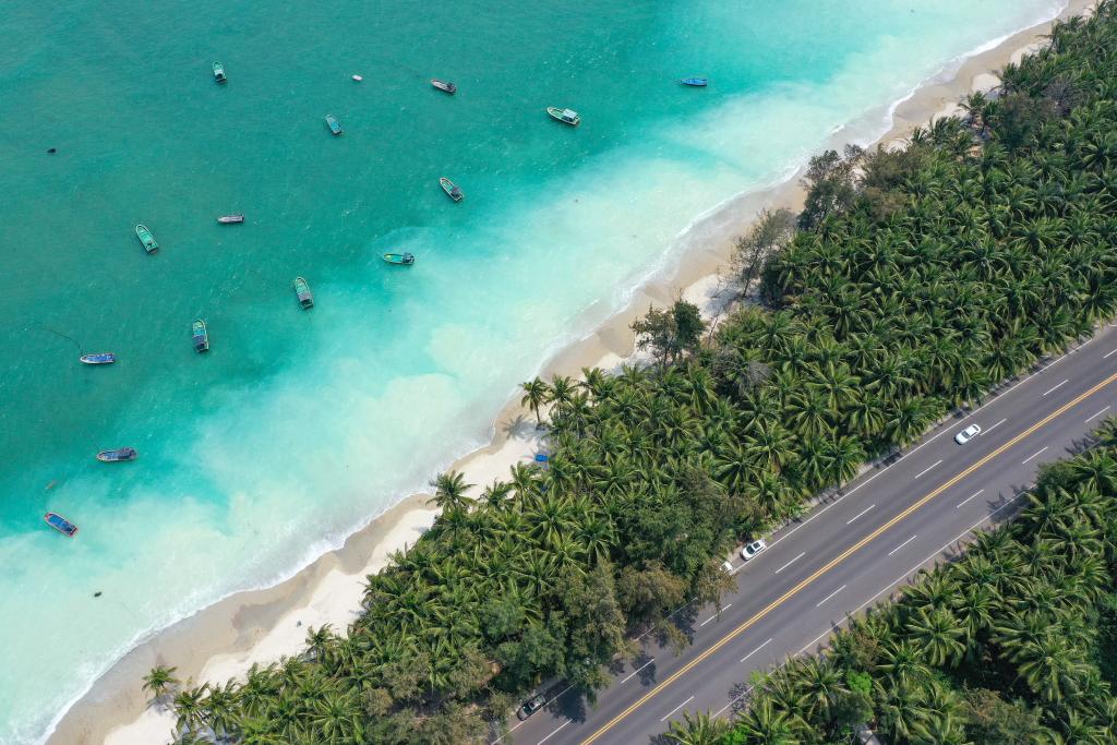 這是3月21日拍攝的海南環(huán)島旅游公路海南瓊海段(無(wú)人機(jī)照片)。新華社記者 郭程 攝