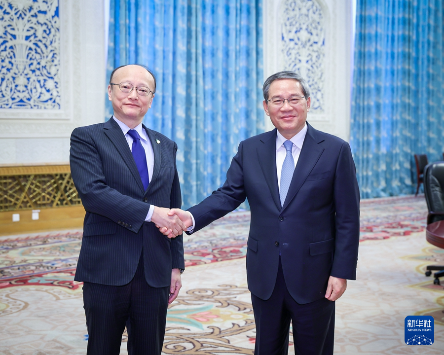 3月24日下午,國(guó)務(wù)院總理李強(qiáng)在北京人民大會(huì)堂會(huì)見(jiàn)亞洲開(kāi)發(fā)銀行行長(zhǎng)神田真人。新華社記者 劉彬 攝