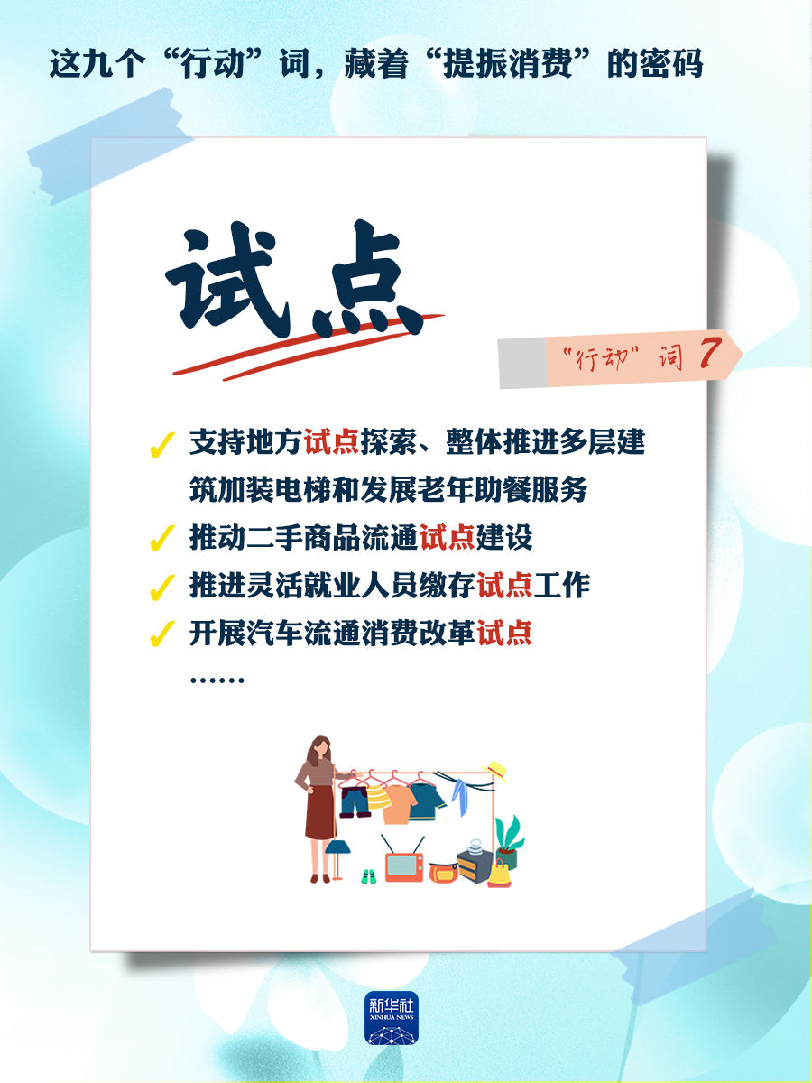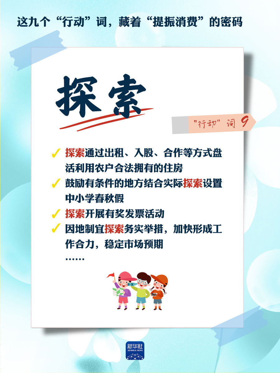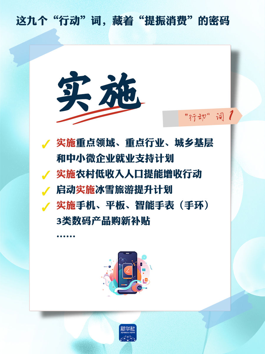 我們梳理出“方案”中使用頻率較高的九個“行動”詞,從這些不同維度的“行動”詞中,解讀“專項行動”的豐富內(nèi)涵和政策“含金量”,看看哪些是立竿見影、吹糠見米的惠民行動?哪些是需要加力擴圍、加快補齊的消費短板?還有哪些是需要有序推進、以點帶面的消費“新”點?
