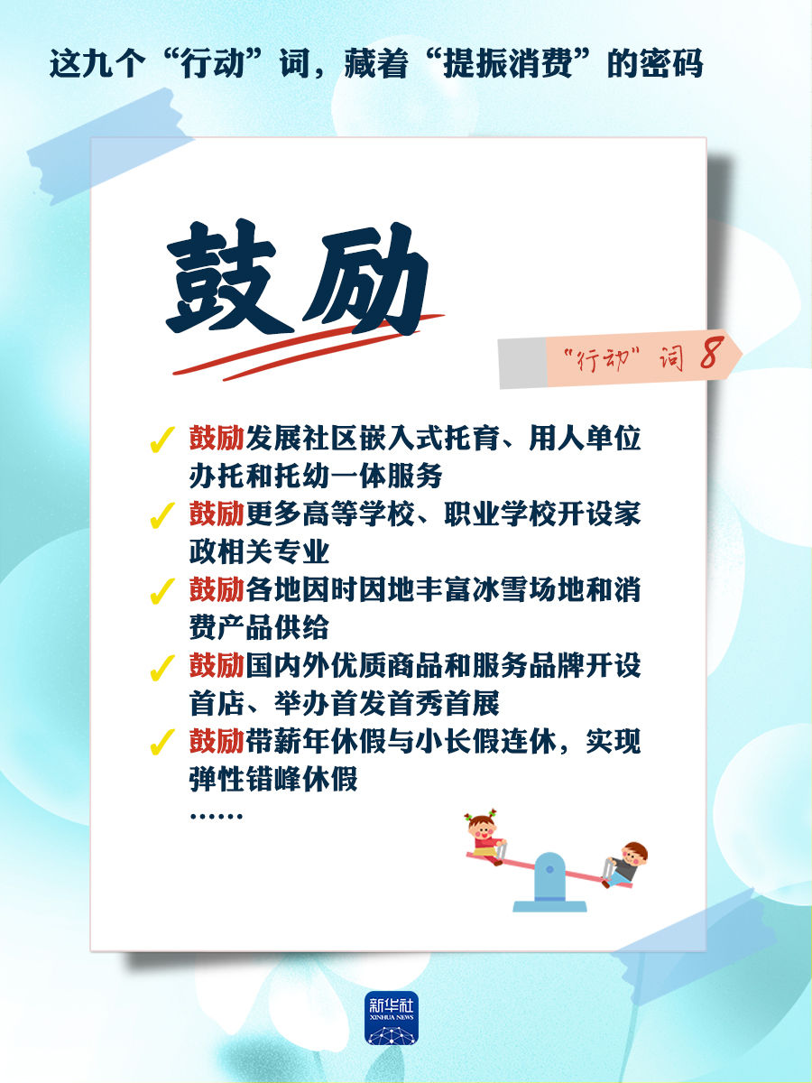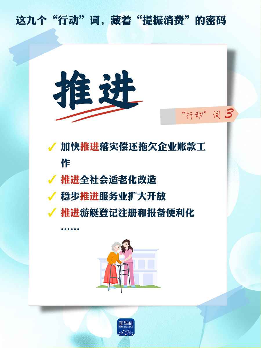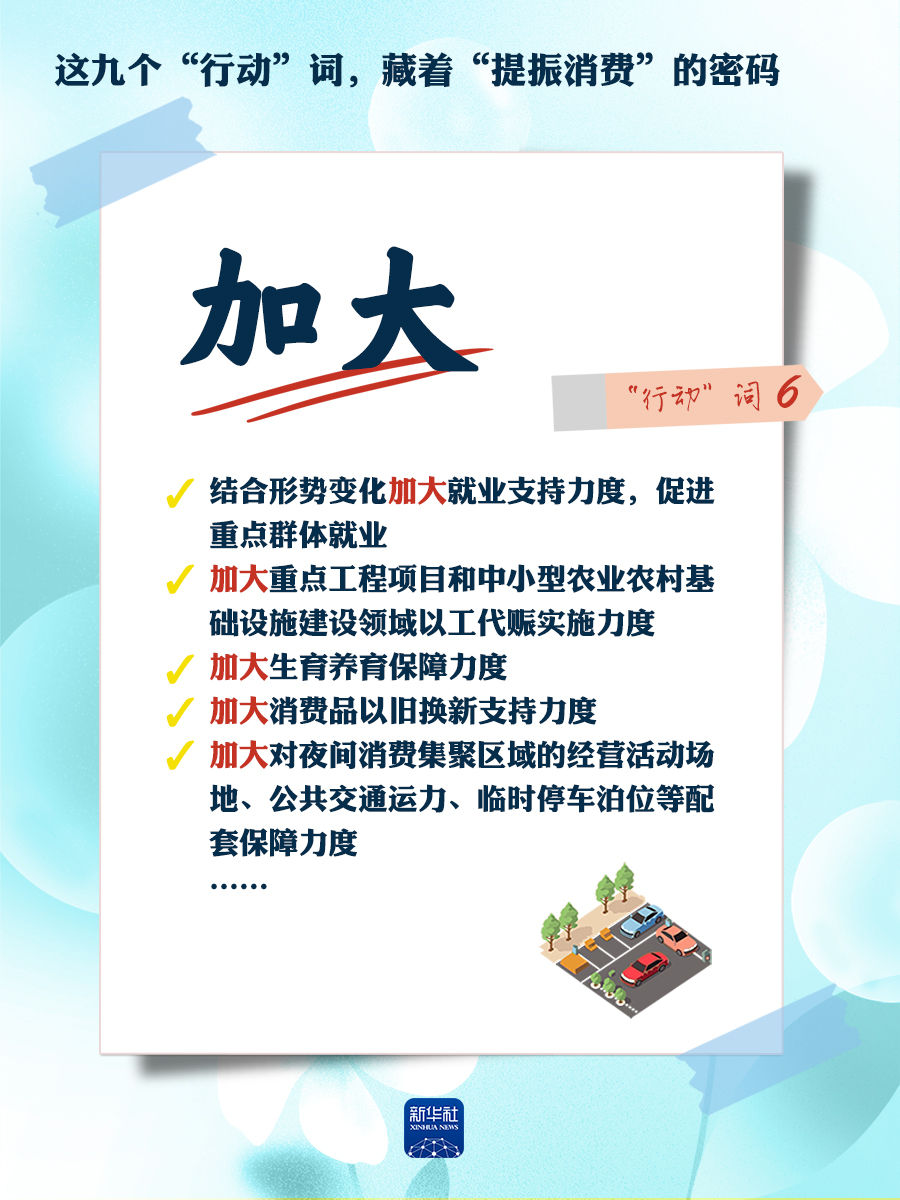 我們梳理出“方案”中使用頻率較高的九個“行動”詞,從這些不同維度的“行動”詞中,解讀“專項行動”的豐富內(nèi)涵和政策“含金量”,看看哪些是立竿見影、吹糠見米的惠民行動?哪些是需要加力擴圍、加快補齊的消費短板?還有哪些是需要有序推進、以點帶面的消費“新”點?