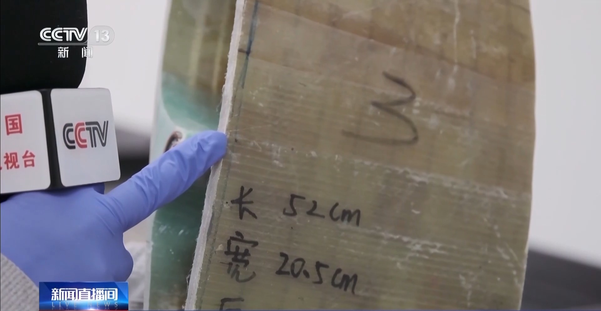 總臺央視記者 王顥一:這塊就是從風(fēng)機(jī)上切割下來的材料,這個黃顏色部分就是用可回收材料制成的,可以通過溫和的辦法得到這種玻纖,成為我們以后利用的基礎(chǔ)原料,可以成為電器開關(guān)、可以變成電器殼,還可以制成纖維頭盔,還可以回收成玻纖粒子,應(yīng)用在我們生活當(dāng)中需要的產(chǎn)品中。