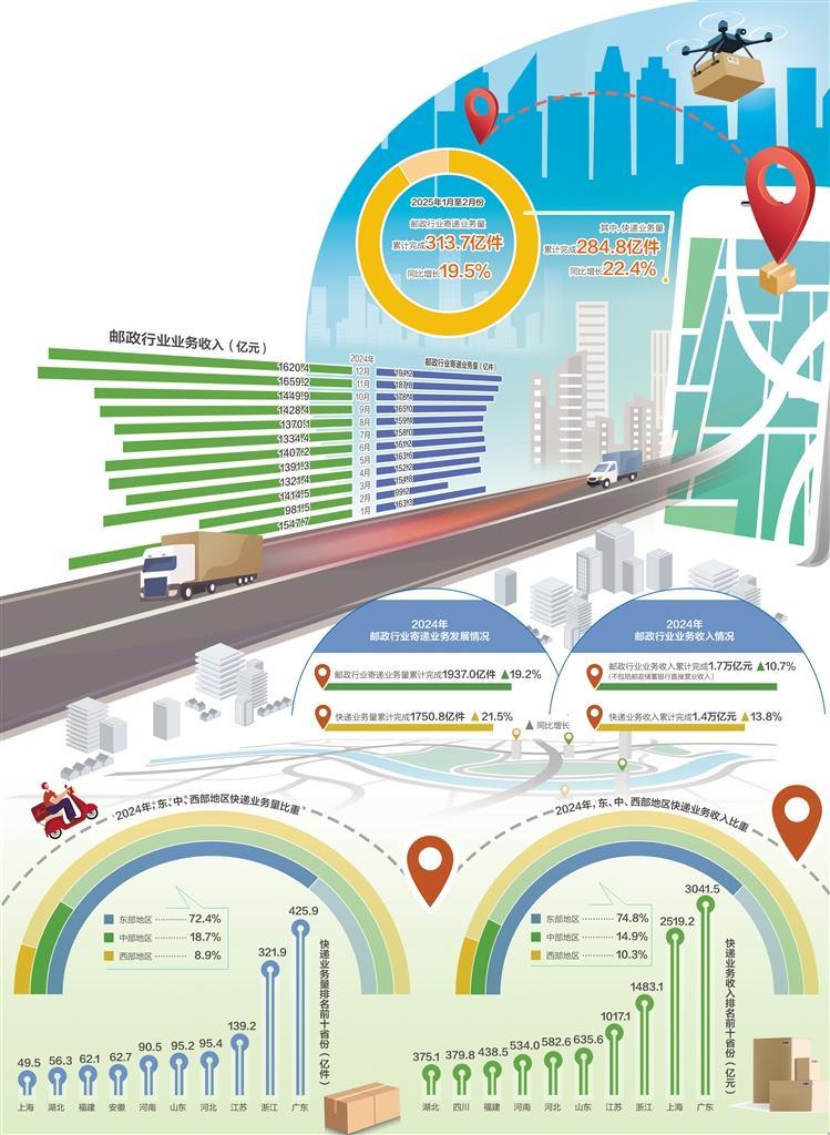 消費(fèi)是經(jīng)濟(jì)增長(zhǎng)的主引擎,快遞業(yè)務(wù)增長(zhǎng)源于消費(fèi)需求有效釋放。從中央經(jīng)濟(jì)工作會(huì)議強(qiáng)調(diào)大力提振消費(fèi)、提高投資效益,全方位擴(kuò)大國(guó)內(nèi)需求,到今年《政府工作報(bào)告》圍繞“大力提振消費(fèi)”作出工作部署,再到各級(jí)政府和有關(guān)部門加碼促消費(fèi),消費(fèi)市場(chǎng)活力持續(xù)攀升。2025年,消費(fèi)潛能將加速釋放,快遞業(yè)仍將保持穩(wěn)步上升態(tài)勢(shì),更多人會(huì)享受到便捷的寄遞服務(wù)。 (本文來(lái)源:經(jīng)濟(jì)日?qǐng)?bào) 作者:吉蕾蕾)
