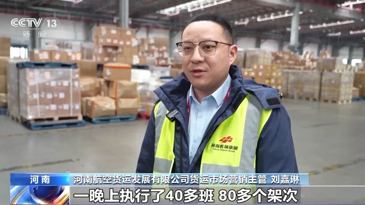 河南航空貨運(yùn)發(fā)展有限公司貨運(yùn)市場(chǎng)營(yíng)銷(xiāo)主管 劉嘉琳:最繁忙的時(shí)候,一晚上執(zhí)行了40多班,80多個(gè)架次。每一個(gè)環(huán)節(jié)、每個(gè)時(shí)間節(jié)點(diǎn)我們都有監(jiān)控,哪個(gè)節(jié)點(diǎn)出現(xiàn)問(wèn)題了,耽擱的時(shí)間比較長(zhǎng)了,后臺(tái)對(duì)現(xiàn)場(chǎng)進(jìn)行提醒。高峰期加派人員,大大提高了作業(yè)效率。