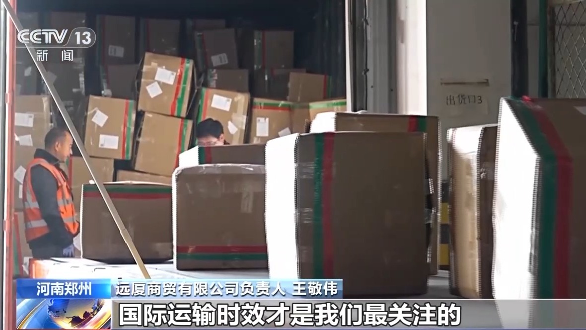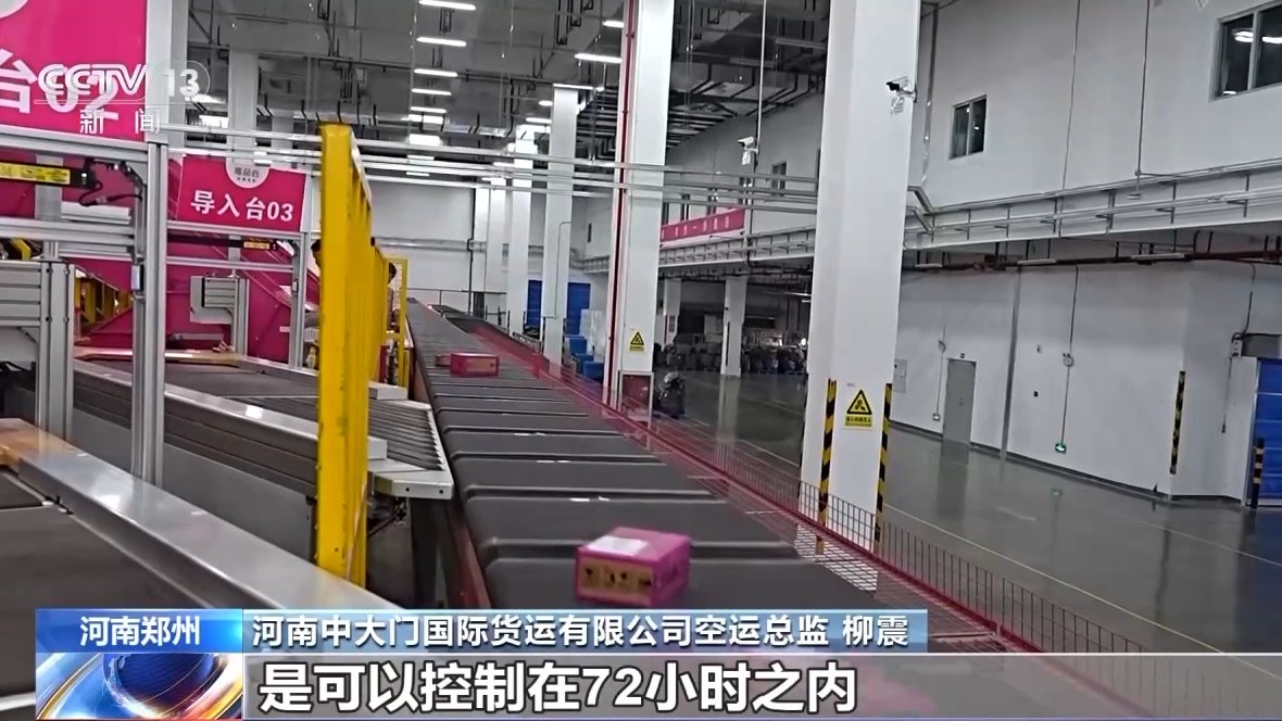河南中大門(mén)國(guó)際貨運(yùn)有限公司空運(yùn)總監(jiān) 柳震:從國(guó)內(nèi)工廠提貨,到整個(gè)航班在境外口岸落地,我們整體的時(shí)效是可以控制在72小時(shí)之內(nèi),完全符合高效運(yùn)轉(zhuǎn)的時(shí)效要求。