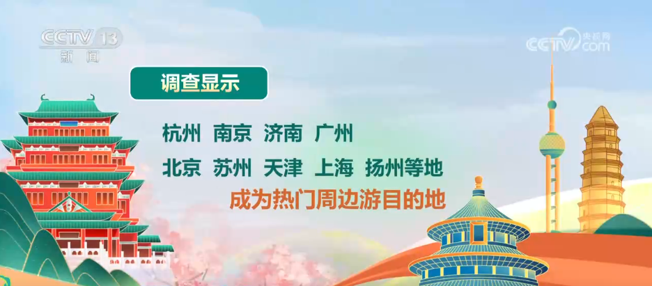 調(diào)查顯示,90%的游客出游半徑在500公里以內(nèi),44%的游客會選擇自駕出游,杭州、南京、濟南、廣州、北京、蘇州、天津、上海、揚州等地成為熱門的周邊游目的地。