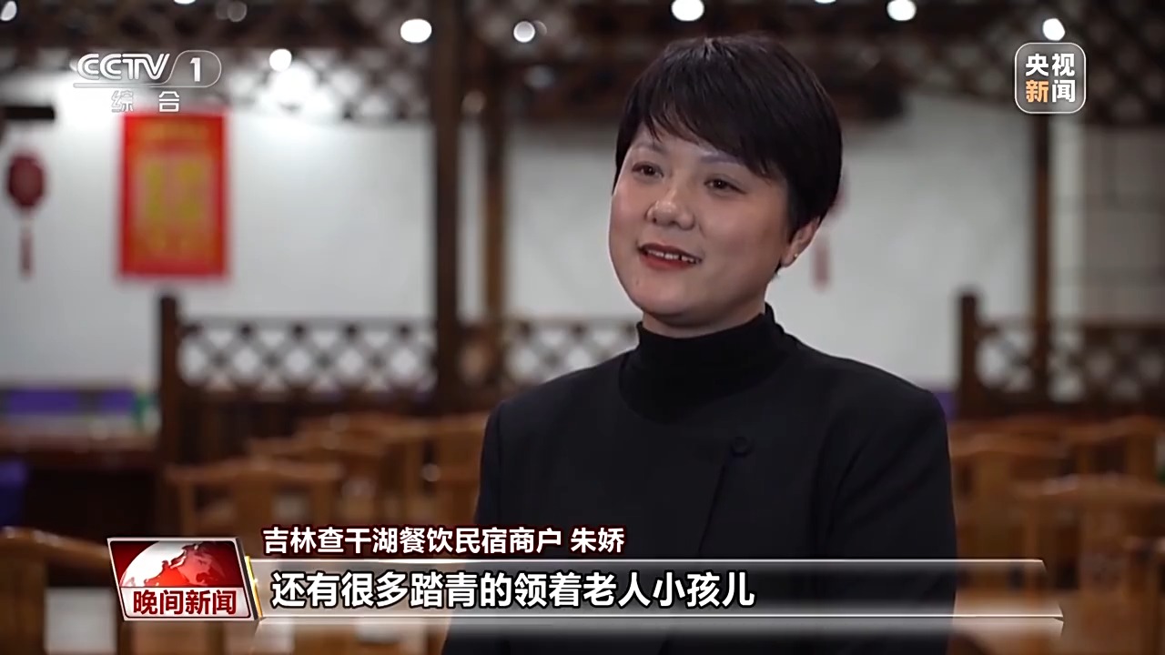 吉林查干湖餐飲民宿商戶 朱嬌:很多攝影愛好者到查干湖來拍冰面上的候鳥嬉戲,還有很多踏青的領(lǐng)著老人小孩兒到查干湖來游玩,我們的餐飲訂單量有所上漲。