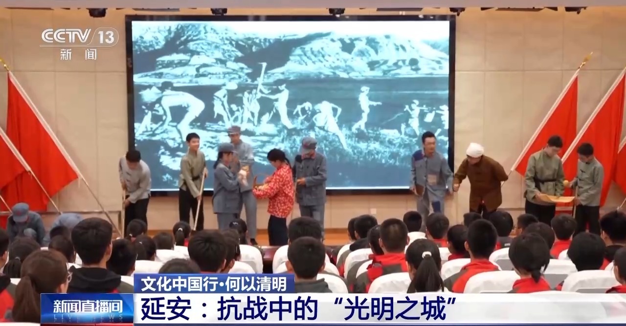 清明節(jié)前夕,在延安職業(yè)技術(shù)學(xué)院附屬中學(xué),學(xué)生們通過一堂跨越時空的思政課,“走進”抗戰(zhàn)時期南泥灣大生產(chǎn)的現(xiàn)場。