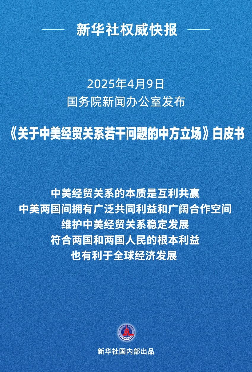 國務院新聞辦公室4月9日發(fā)布《關于中美經(jīng)貿(mào)關系若干問題的中方立場》白皮書,澄清中美經(jīng)貿(mào)關系事實,闡明中方對相關問題的政策立場。