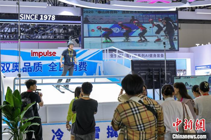 4月11日,第五屆中國國際消費(fèi)品博覽會(huì)即將開展,企業(yè)推出具有AI功能的滑雪模擬機(jī)。中新社記者 駱云飛 攝
