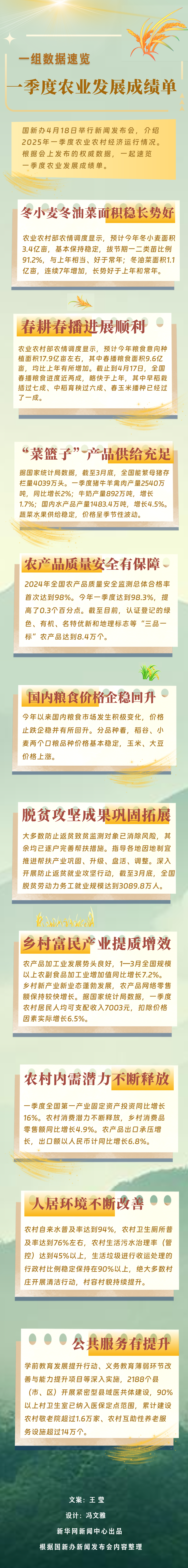 一組數據速覽一季度農業(yè)發(fā)展成績單