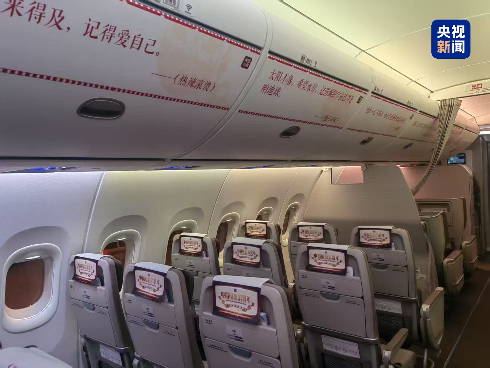 東方航空機艙內展示眾多電影元素。