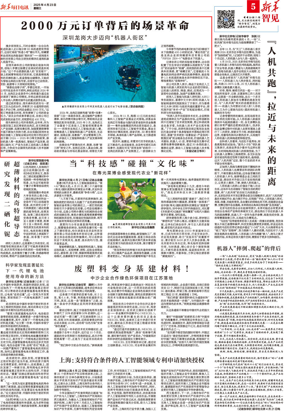 在煜禾森科技公司的智能化組裝車間里,創(chuàng)始人李雷達指著正在調(diào)試的底盤系統(tǒng)介紹:“這個平臺就像機器人的‘百變軀干’,裝上機械臂和視覺識別系統(tǒng),它就是精準(zhǔn)高效的采摘機器人;配備智能倉儲模塊,又能成為穿梭倉庫的分揀專家。目前平臺已在物流、安防、能源等8大領(lǐng)域?qū)崿F(xiàn)落地。”