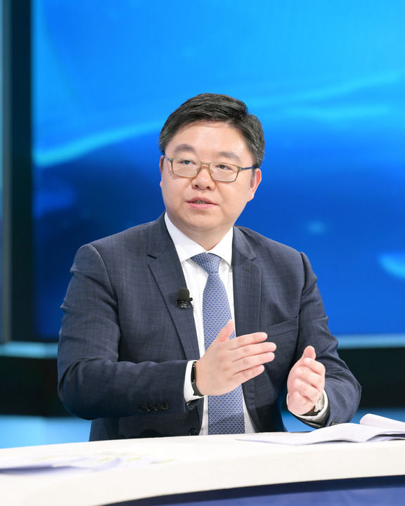 國(guó)家發(fā)展改革委民營(yíng)經(jīng)濟(jì)發(fā)展局副局長(zhǎng)劉民在第十五期“中國(guó)經(jīng)濟(jì)圓桌會(huì)”錄制現(xiàn)場(chǎng)發(fā)言。新華社記者 李賀 攝