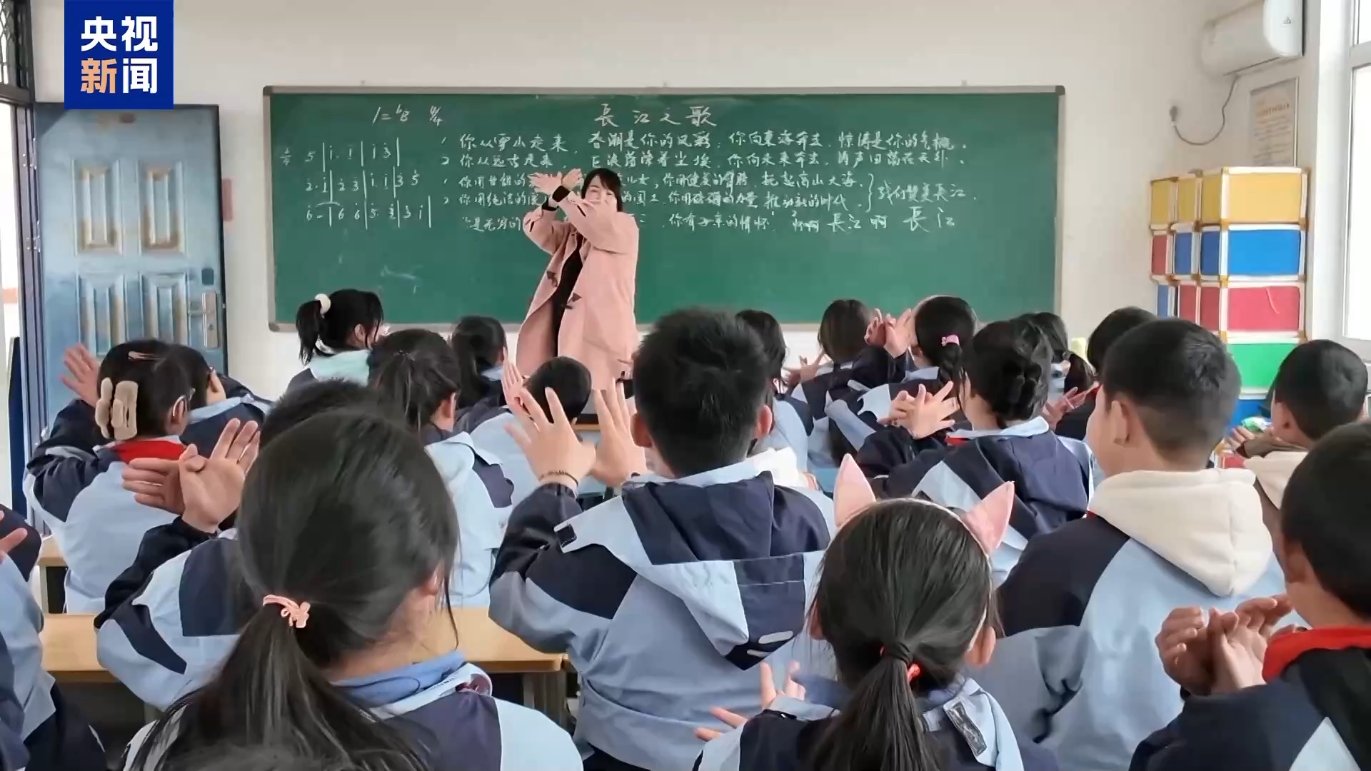 朱超敬:調(diào)完琴之后,他正在教室上課,我一下就萌發(fā)了那種小時候上課的狀態(tài),孩子們特別可愛。他正在上課,我就跟梁老師說,我能不能給大家教個歌,或者上一節(jié)課。