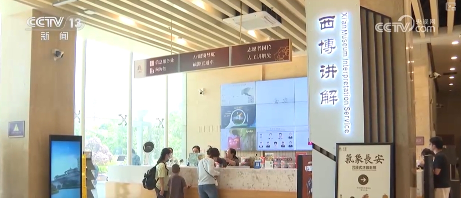 西安博物院公共服務(wù)部工作人員楊蕊伊介紹,“五一”期間,票務(wù)、安保、保潔人員增加了班次,同時也增設(shè)了大量的值班人員。在講解方面,講解人員、志愿者人員都增加了人數(shù),同時也增加了講解班次。他們在西門、北門都設(shè)有游客服務(wù)中心,為廣大游客提供便利服務(wù)。針對于國際游客,他們有英文版的自助導(dǎo)覽機(jī)提供服務(wù)。