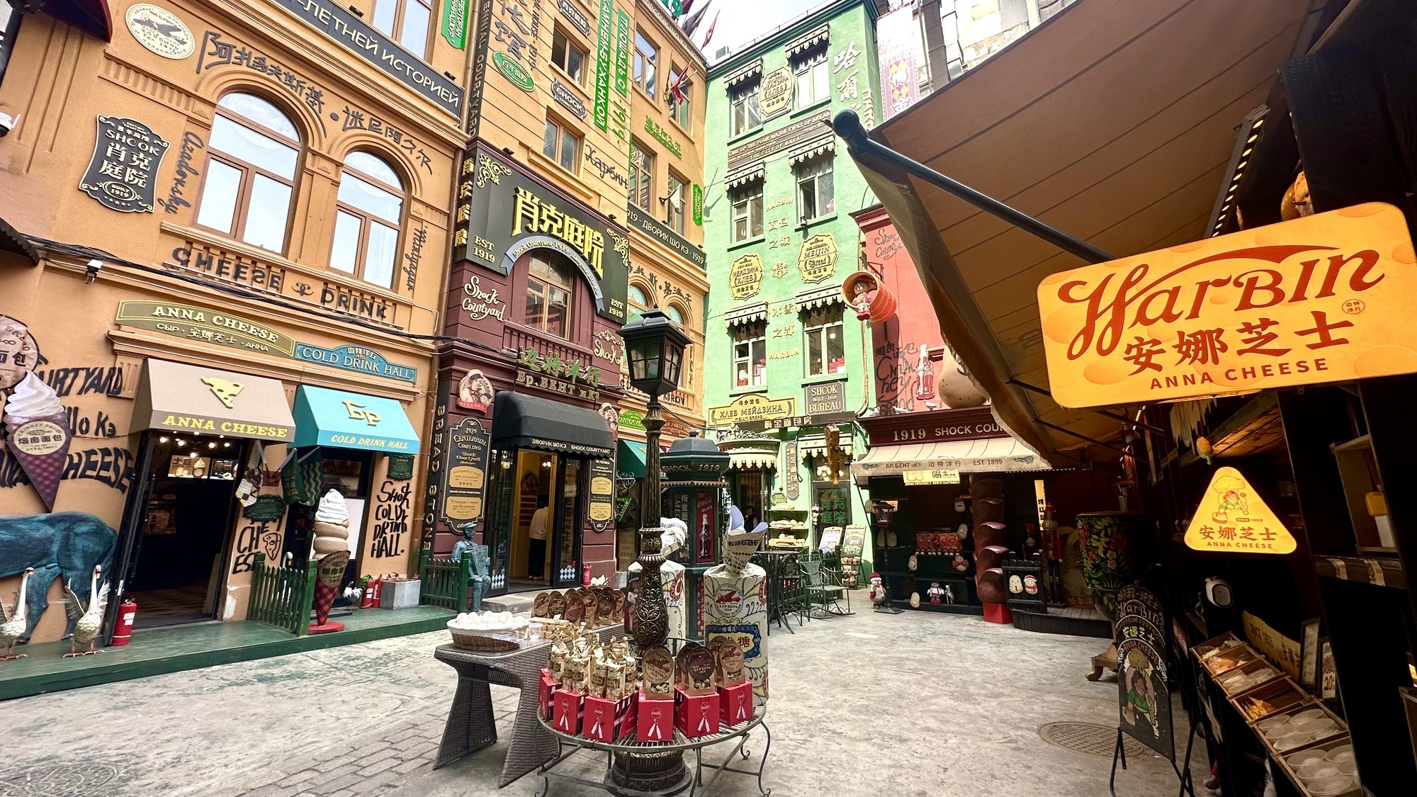 梅金面包房、阿扎多夫斯基糖果店、邊特洋行等,都是100年前在這個小院里經(jīng)營的品牌,重新的引入并開業(yè),讓游客感受到了百年老街曾經(jīng)的模樣。