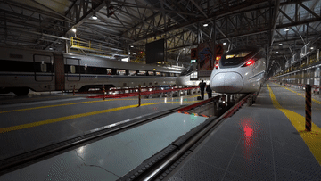 動(dòng)車(chē)進(jìn)入檢修庫(kù)內(nèi),工作人員正根據(jù)任務(wù)計(jì)劃進(jìn)行動(dòng)車(chē)組一級(jí)修作業(yè)。