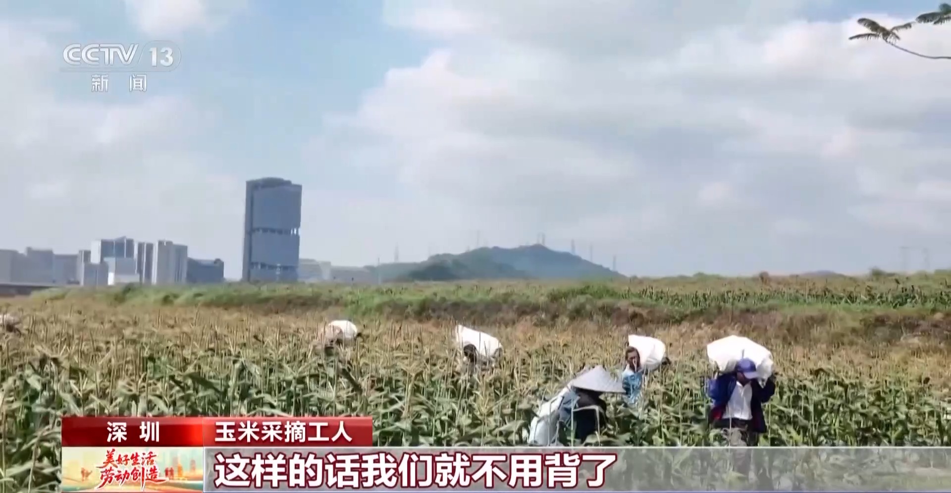 總臺(tái)央視記者 張春玲:在深圳光明區(qū),2000畝的玉米地都已經(jīng)成熟了,這次我的工作當(dāng)中有了一個(gè)新搭子——采摘小車(chē)。