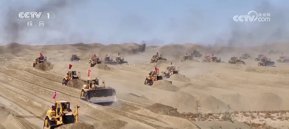 在位于塔克拉瑪干沙漠南緣的新疆昆玉市,7.38萬畝土地開發(fā)建設(shè)項目進(jìn)入攻堅階段。上百臺裝載機、平地機在沙海中來回奔忙,原本丘壑縱橫的流動沙丘經(jīng)過連續(xù)作業(yè),逐漸變得平整,顯露出田壟的輪廓。