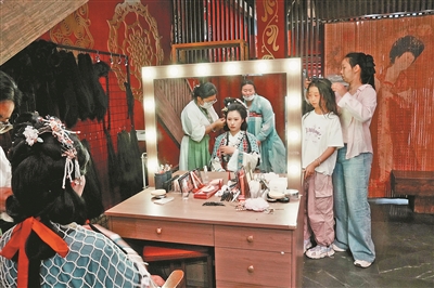 一本手冊(cè),游客“受寵”,商家獲益。在云裳洛城漢服店,店長(zhǎng)張藍(lán)的賬本記得清楚:妝造抵扣30元、攝影打八五折,4月加入手冊(cè)活動(dòng)后,顧客比上月多了近三成?!拔覀冮_(kāi)業(yè)不久,最需要的就是客流量。”張藍(lán)說(shuō),30平方米的小店,每天到店有50多人,3名妝造師常常忙得不可開(kāi)交。