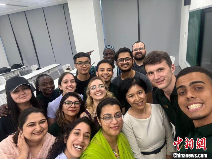 2024年11月15日,尼古拉(右二)在中國農(nóng)業(yè)大學(xué)三亞研究院就讀時,與老師和同學(xué)的合影。(受訪者 供圖)