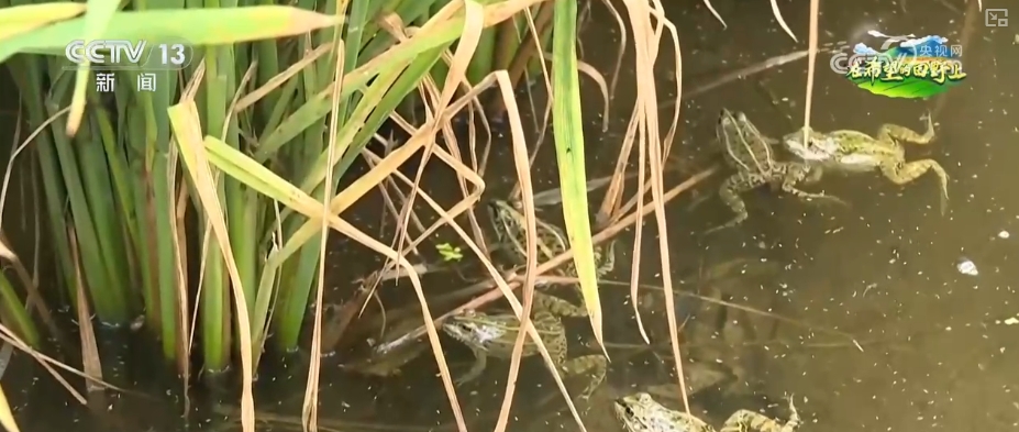 小鴨子們喜歡吃稻谷,它們會(huì)不會(huì)把稻田里的谷子也吃掉?為了防止這樣的情況發(fā)生,這里采用的模式是“鴨蛙稻”模式,5月放鴨、7月放蛙,在水稻進(jìn)入抽穗期,也就是有稻谷的時(shí)候,15萬(wàn)只小青蛙就會(huì)來(lái)接力管理這片農(nóng)田,由它們來(lái)捕食害蟲(chóng),替代殺蟲(chóng)劑。