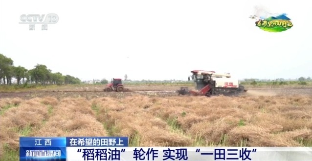 南昌新建區(qū)聯圩鎮(zhèn)稻油輪作示范基地田管員熊雪楚:油菜收完以后我們馬上就可以種水稻,一季油菜加兩季水稻,讓我們的收入比以前提高了很多。