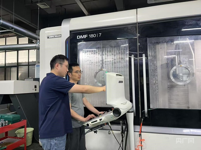 楊浩駿與團(tuán)隊(duì)成員研究航空裝配制孔技術(shù)(央廣網(wǎng)記者 欒永勝 攝)
