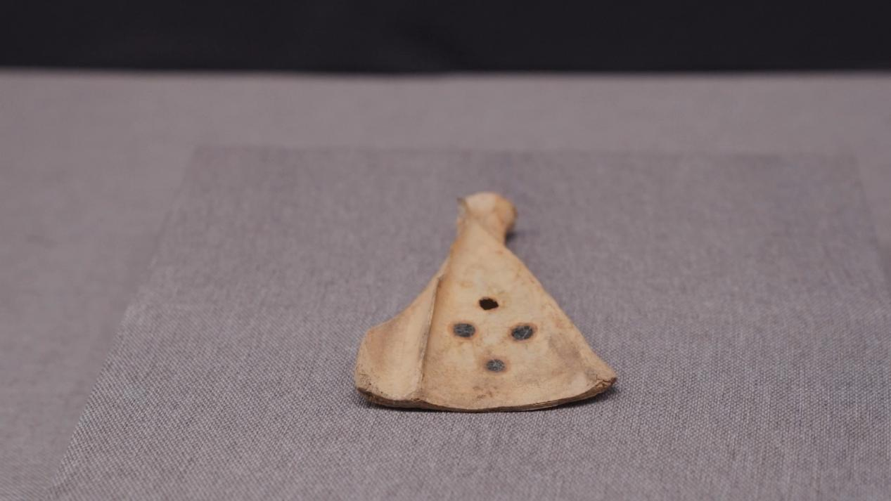 西域都護(hù)府博物館館長(zhǎng) 唐羽嵐:卓爾庫(kù)特古城它出土的遺物,其中有一些非常的獨(dú)特,而且應(yīng)該說(shuō)是全疆也是唯一性的,其中有三枚就是保存得非常完整,品相非常好的卜骨。