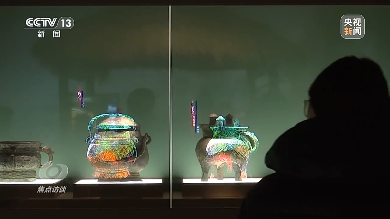 文物展柜上,透明LED屏與數(shù)字虛擬影像結(jié)合,不僅精準(zhǔn)“復(fù)刻”對(duì)應(yīng)的青銅器,也讓觀眾得以更直觀地了解其形制與用途。在裸眼3D技術(shù)加持下,珍貴的文物突破了靜態(tài)展示的局限。