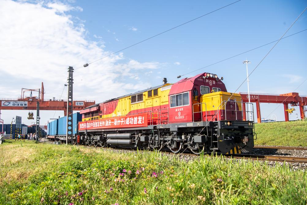 4月20日上午,一列滿載“重慶造”聚酯切片的中亞班列,從重慶團(tuán)結(jié)村中心站緩緩駛出,這是重慶首次開行圖定中亞班列,此后將以每月2列的固定頻次實(shí)現(xiàn)常態(tài)化開行。新華社記者 唐奕 攝